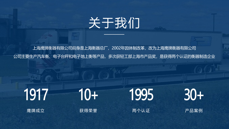上海鷹牌衡器有限公司是上海衡器總廠轉(zhuǎn)制的企業(yè),前身是上海衡器總廠,創(chuàng)建于1917年,是地磅等衡器設計、制造廠家,主營電子地磅、電子秤以及地磅維修,2002年因體制改革,改為上海鷹牌衡器有限公司!